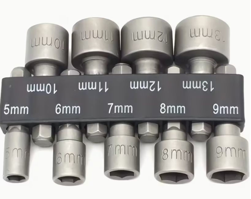 These hex socket bits are used for nuts and bolts, with diameters ranging from 5 to 13 millimetres.