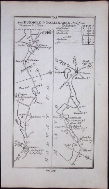 Title: Ireland 245 Years -Old Antique Road Map Tuam Galway to Sligo-214