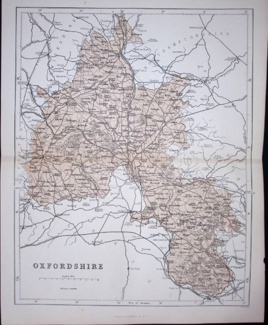 Title: Oxfordshire 150 Years-Old 1875 Coloured Detailed Antique 1875 Map-56