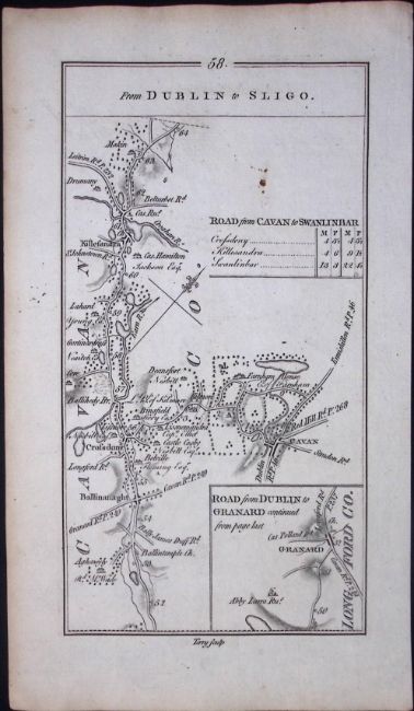Title: Ireland 245 Years -Old Antique Road Map From Dublin to Sligo-58