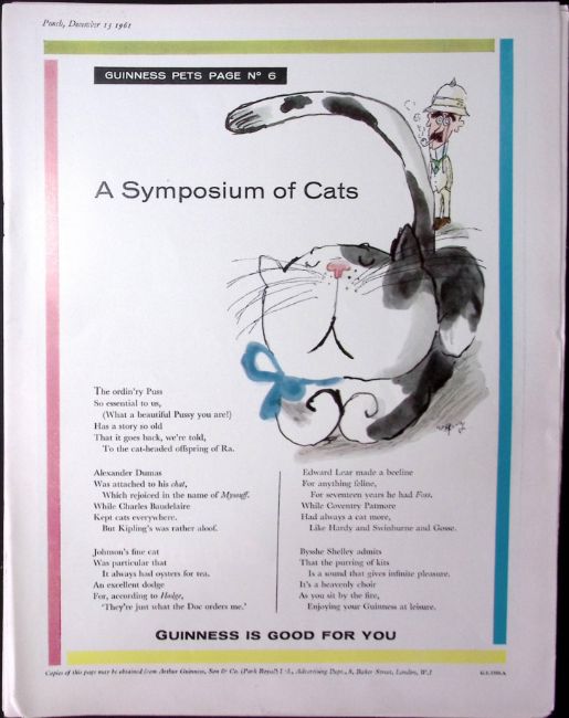 Title: Guinness 1961 Original 65 Years-Old Print Symposium of Cats- G.E.3385-A.