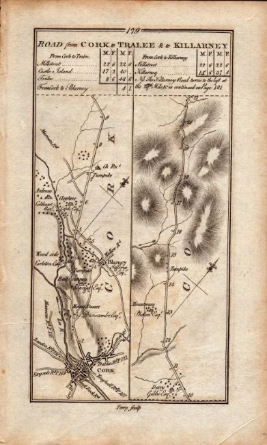 Title: Ireland Rare 1778 Antique 247 Year-Old Road Map Cork Blarney to Tralee & Killarney.