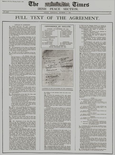 Anglo-Irish Treaty, Agreed & Signed 1921, Ended The Irish War of Independence Rare Newspaper