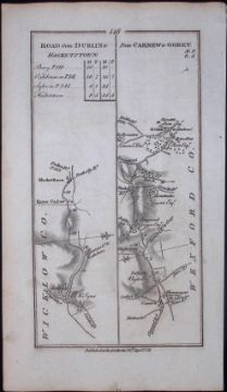 Title: Ireland 245 Years -Old Antique Road Map Dublin To Carnew To Gorey-146