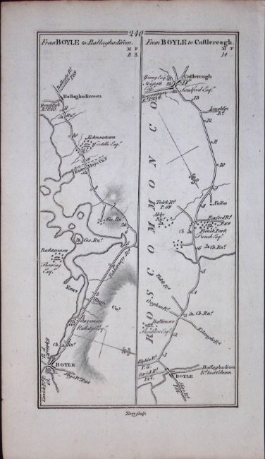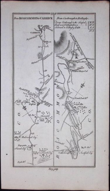 Title: Ireland 245 Years -Old Antique Road Map From Roscommon to Carrick-240
