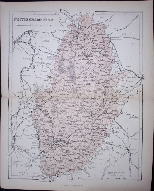 Title: Nottinghamshire 150 Years-Old 1875 Coloured Detailed Antique 1875 Map-38