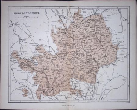 Title: Hertfordshire 150 Years-Old Coloured Antique 1875 Map-53