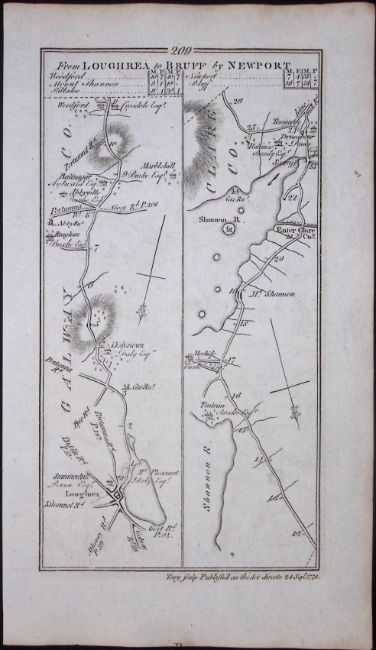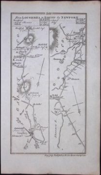 Title: Ireland 245 Years -Old Antique Road Map Loughrea to Bruff Via Newport-210