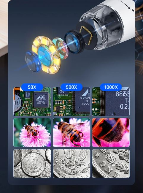 Whether you're a student diving into science, a parent encouraging curiosity, or a tech enthusiast inspecting circuits, this digital microscope is a powerful, portable learning tool—compatible with Windows and macOS systems and backed by CE/RoHS/ISO 9001 certifications.