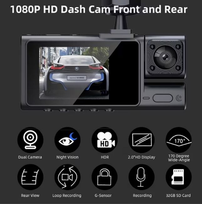 - Wide-angle lenses: 170° (front), 150° (inside), 140° (rear)