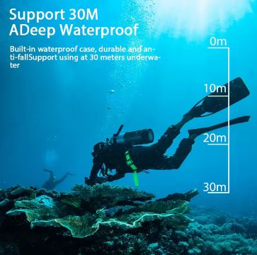 - 30-Meter Waterproof Design – Perfect for snorkelling, diving, swimming, skiing, or any water activity.
