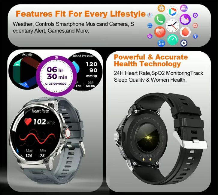 - Smart Functions: Features include remote photography, music control, weather forecast, stopwatch, and much more for a truly smart experience.