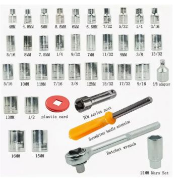 - 16 x Metric Sockets (4mm–16mm)