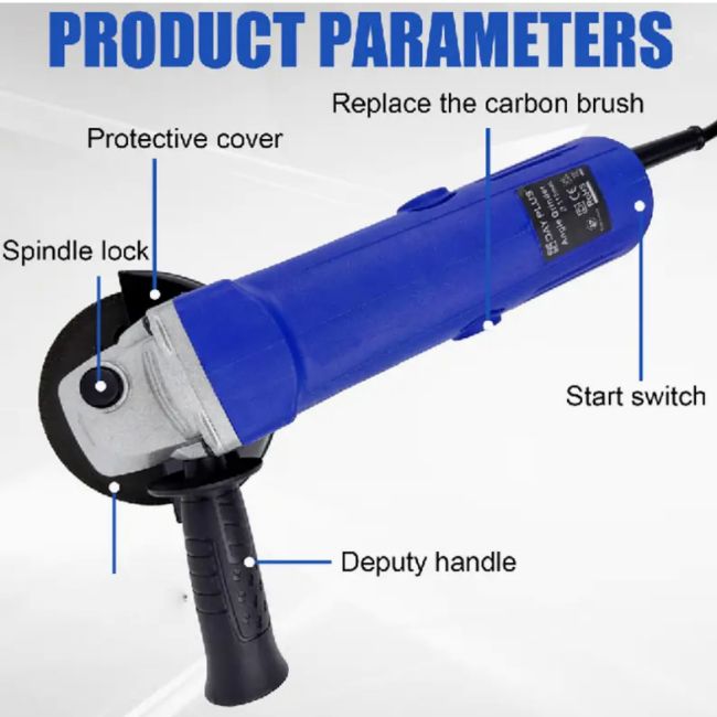 - Included Accessories: 1 Abrasive Wheel, 1 Side Handle, 1 Wheel Guard, 2 Carbon Brushes