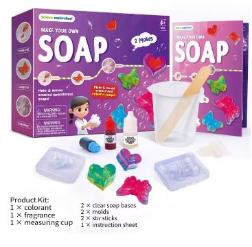 - DIY Soap-Making Kit – lets kids design soaps in their favorite colours and shapes