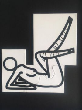 Julian Opie (1958) ‘This is Shahnoza’ in 3 parts, wooden maquettes, Framed, 2008