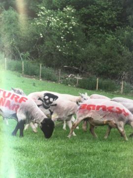 Description: Witty and subversive, his stencils show monkeys with weapons of mass destruction, policeman with smiley faces, rats with drills and umbrellas. His statements, incitements, ironies and epigrams are by turns intelligent and cheeky comments on everything from the monarchy and capitalism to the war in Iraq and farm animals.