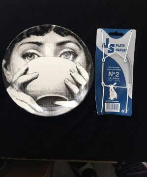 Ready to hang, in the manner of Fornasetti wall plates of Italy