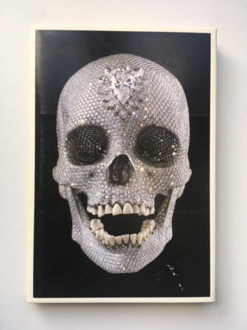 Black and white with colour images. Original Dust cover, Picture Hardback cover. Thread Sewn with 77 pages of text and photo images. One large pop-up skull feature, 40 images of the making of the diamond encrusted skull. Hard board Black and silver Outer Sleeve.