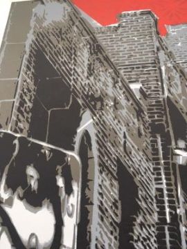 Hicks first started stencilling his work on the streets then as many Urban Artists banned from the streets took his work mainstream with screen print.
