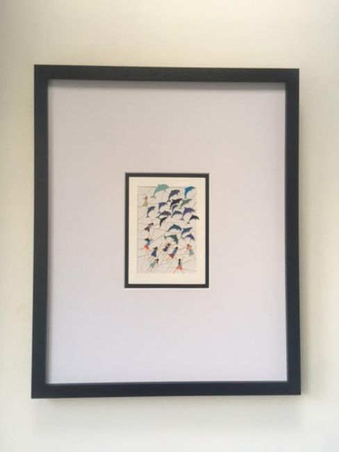 Description – From her Nature series, GE FENG specialises in Paper-cutting and screen-printing. ‘Chasing Dolphins’ is Ready to Hang. This Fine and detailed cut out art is mounted in a Black Extra Large Frame 51 x 41 cm 20” x 16” with open window of 20 x 15 cm or 8” x 6”.