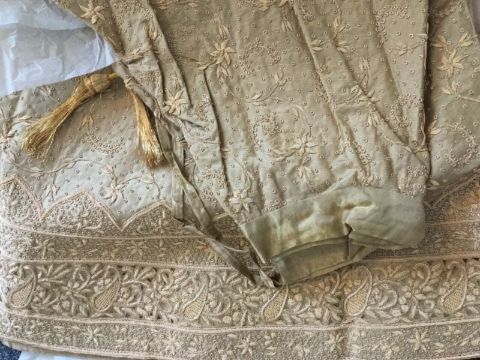 Half the embroidery is in pure silver thread so includes the value of the pure silver.