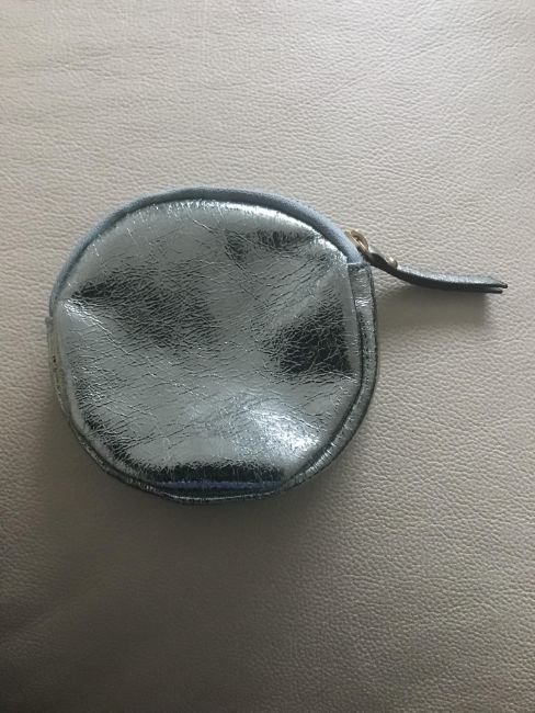 Diameter 5” Metallic sea green purse with goldtone hardware.