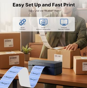 4×6 Compact Wireless Label Maker for Small Business & Home, Compatible with Android & iPhone & Windows, Desktop Printer, Portable, USB Connectivity, Thermal Paper, Monochrome Output