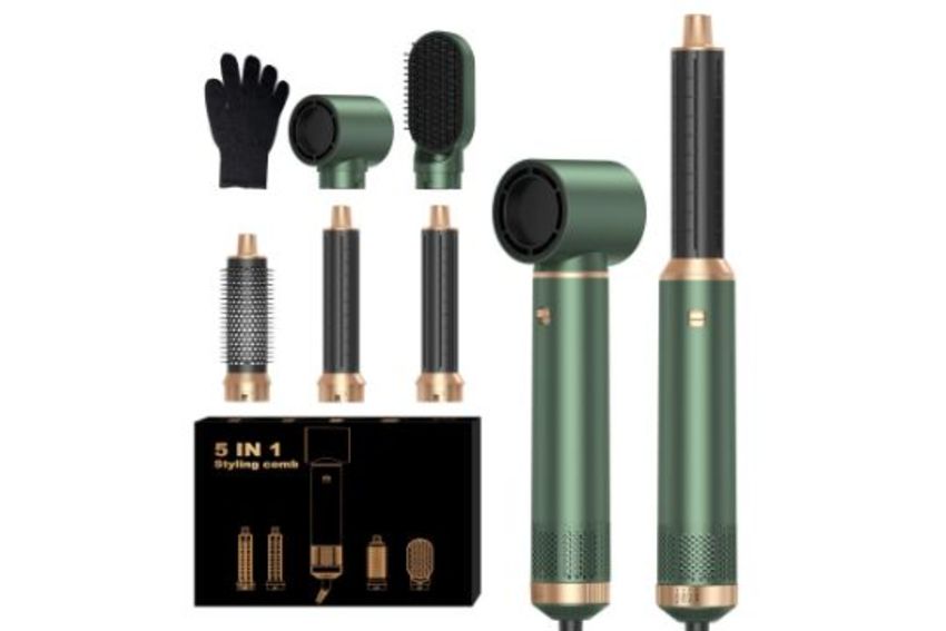 Airbrush 5 in 1 - The airstyler includes 1 * hair dryer, 2 * hair dryer brush, 2 * left right hot air curler and 1* heat-resistant glove.