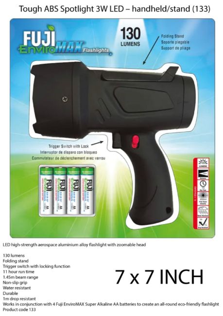 Constructed from ABS plastic this 4 AAA battery spotlight, batteries included, is an excellent contractor light.