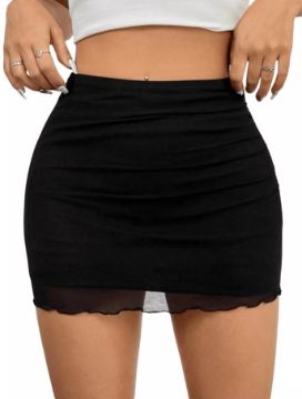 RRP £18.36 Women's Sheer Mesh Mini Skirts Elastic High