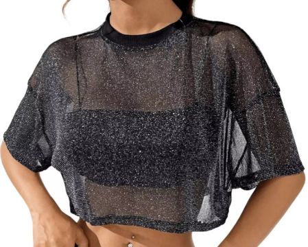 RRP £18.36 Women's Sequins Mesh See Through T Shirts