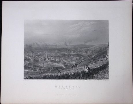Title: Yorkshire View of The Town of Halifax Victorian Antique 150 Years-Old Engraving-3