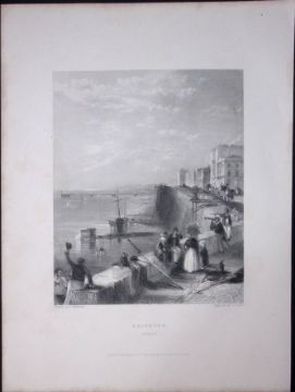 Title: Brighton Harbour Wall WH Bartlett 183 Years-Old Antique Steel Engraving-21