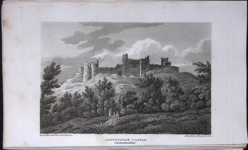 Lanstephar Castle Wales Antique 211 Years-Old Georgian Steel-Engraving-485