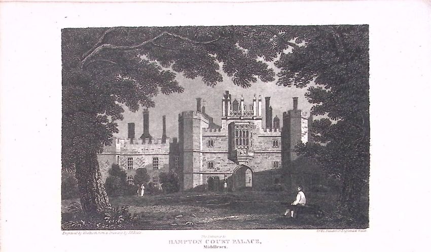 Hampton Court Palace London Antique 200 Years-Old Steel-Engraving-263