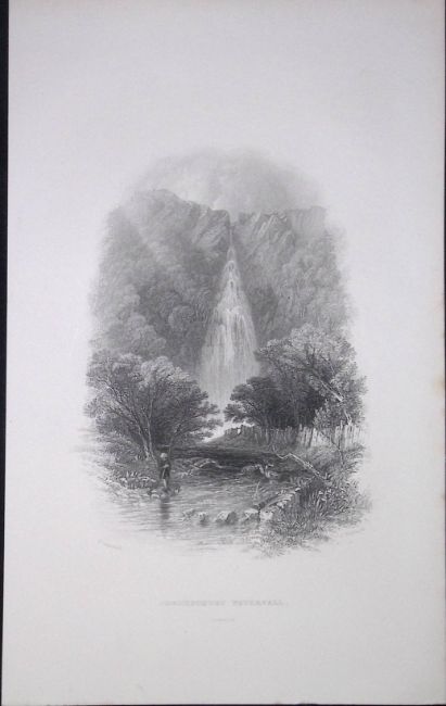 Title: Ireland Powerscourt Waterfall Wicklow Antique 183 Years-Old Steel-Engraving-12.