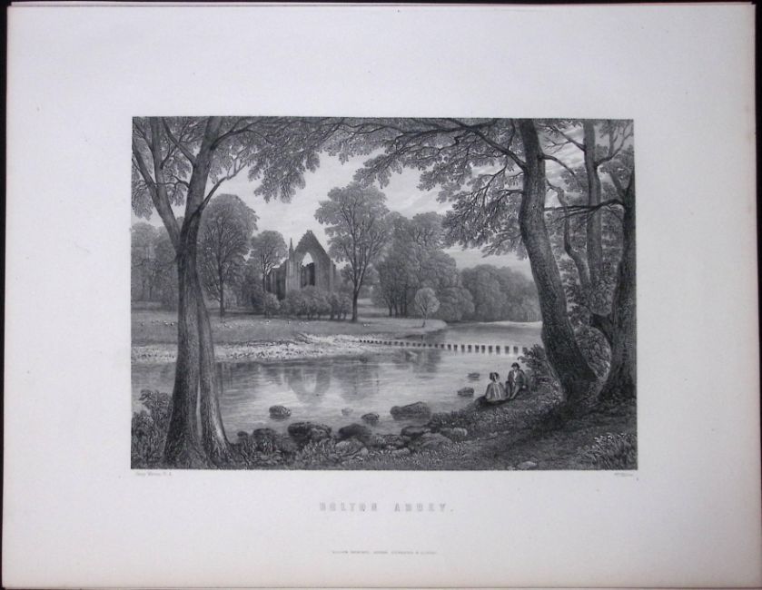 Title: Yorkshire View of Bolton Abbey Victorian Antique 150 Years-Old Engraving-19