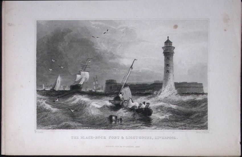 Title: Liverpool Black Rock Fort & Lighthouse Antique 195 Years-Old Steel-Engraving-26