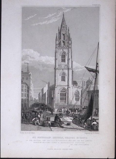 Title: Liverpool St Nicholas Church Antique 195 Years-Old Steel-Engraving-35