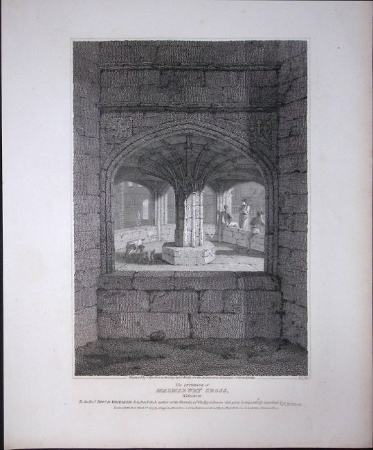 Title: Malmsbury Cross Wiltshire Rare John Britton 191 Years-Old Antique Steel Engraving-29.