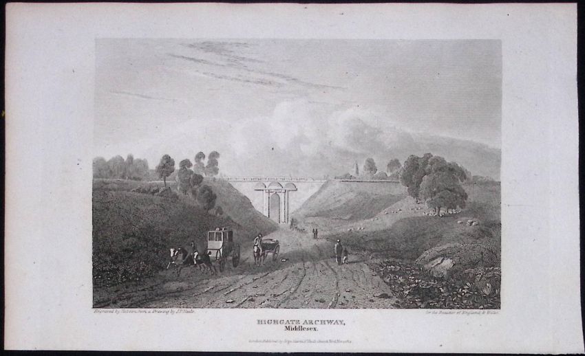 Title: London Highgate Archway Antique 200 Years-Old Steel-Engraving-110