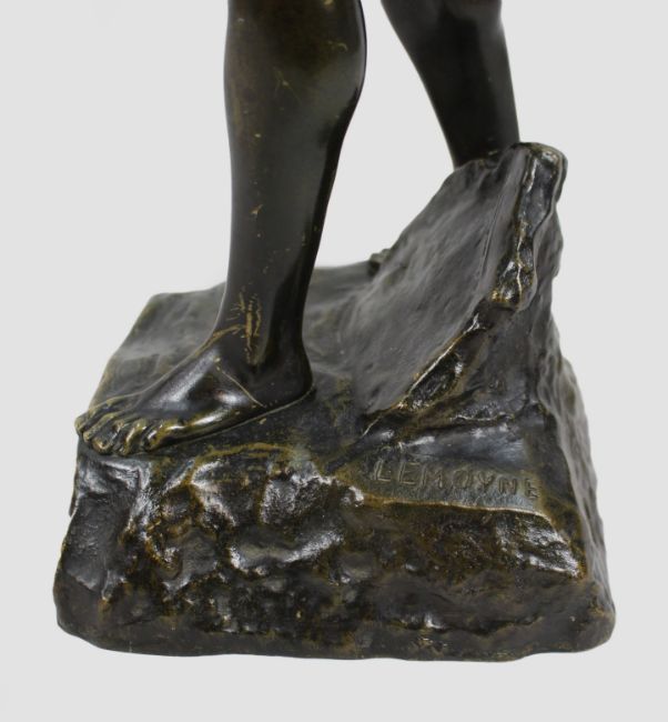 A finely cast bronze figure of a classical youth, dating to the late nineteenth century, signed LEMOYNE to the rocky base.