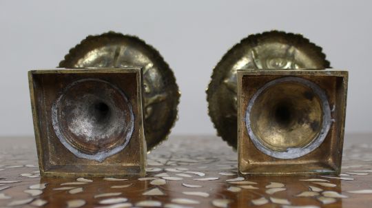 The undersides show signs of traditional casting and assembly, including solder and fixing bolts.