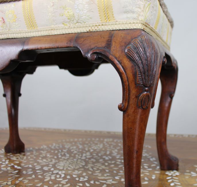 The frame is finely carved with shell motifs to the knees and scroll feet, displaying good quality craftsmanship typical of the period.