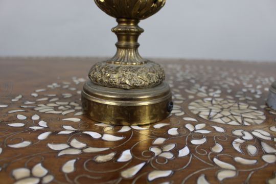Old lamp conversions with drilled hole to the base and later rod within.