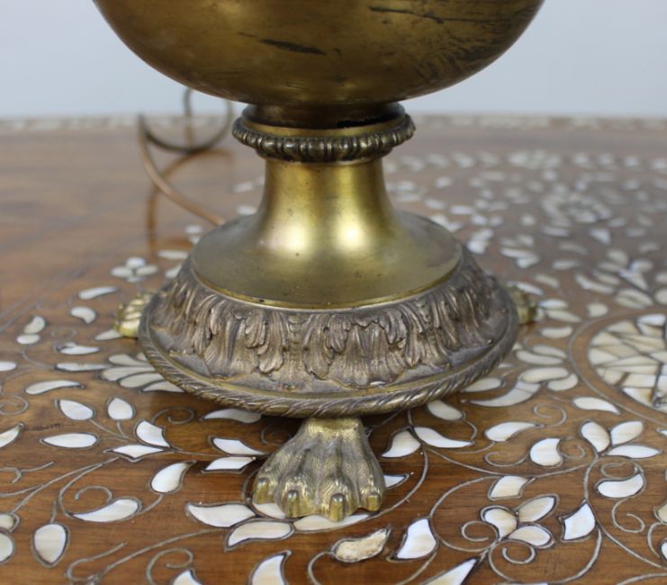 A decorative pair of French gilt bronze urns, later adapted as table lamps, dating from around 1900.