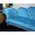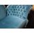 Recently reupholstered in a rich turquoise velvet, the sofa combines comfort with a strong decorative presence.