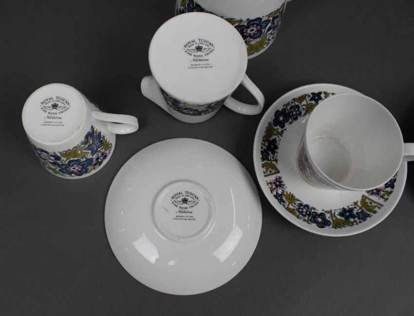 The service is marked to the bases “Royal Tuscan – Fine Bone China – Nocturne – Member of the Wedgwood Group”
