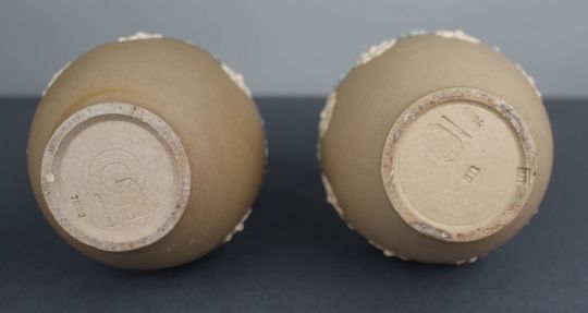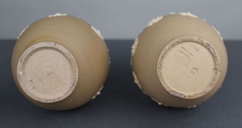 Impressed marks to the bases DOULTON LAMBETH ENGLAND, pattern number 7865, together with assistant decorator’s marks.